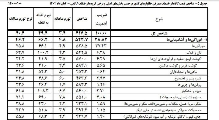 بررسی داده‌های رسمی مرکز آمار نشان می‌دهد نرخ تورم سالانه میوه و خشکبار در آبان ۱۴۰۴ عدد ۸.۶۱ درصد بوده و قیمت اقلامی مانند مغز گردو، پسته و بادام درختی نسبت به آبان سال گذشته به ترتیب ۶۰، ۶۴.۲ و ۷۲.۷ درصد رشد داشته است.