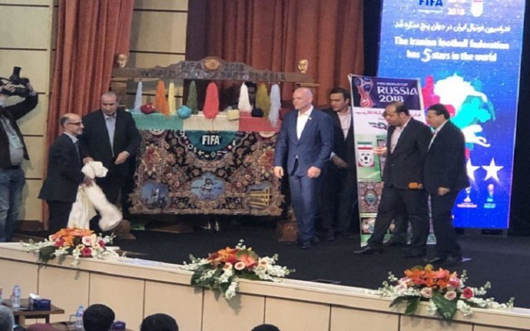 در پایان مراسم فدراسیون فوتبال قالیچه‌ای را به عنوان یادگاری به اینفانتینو تقدیم کرد.
