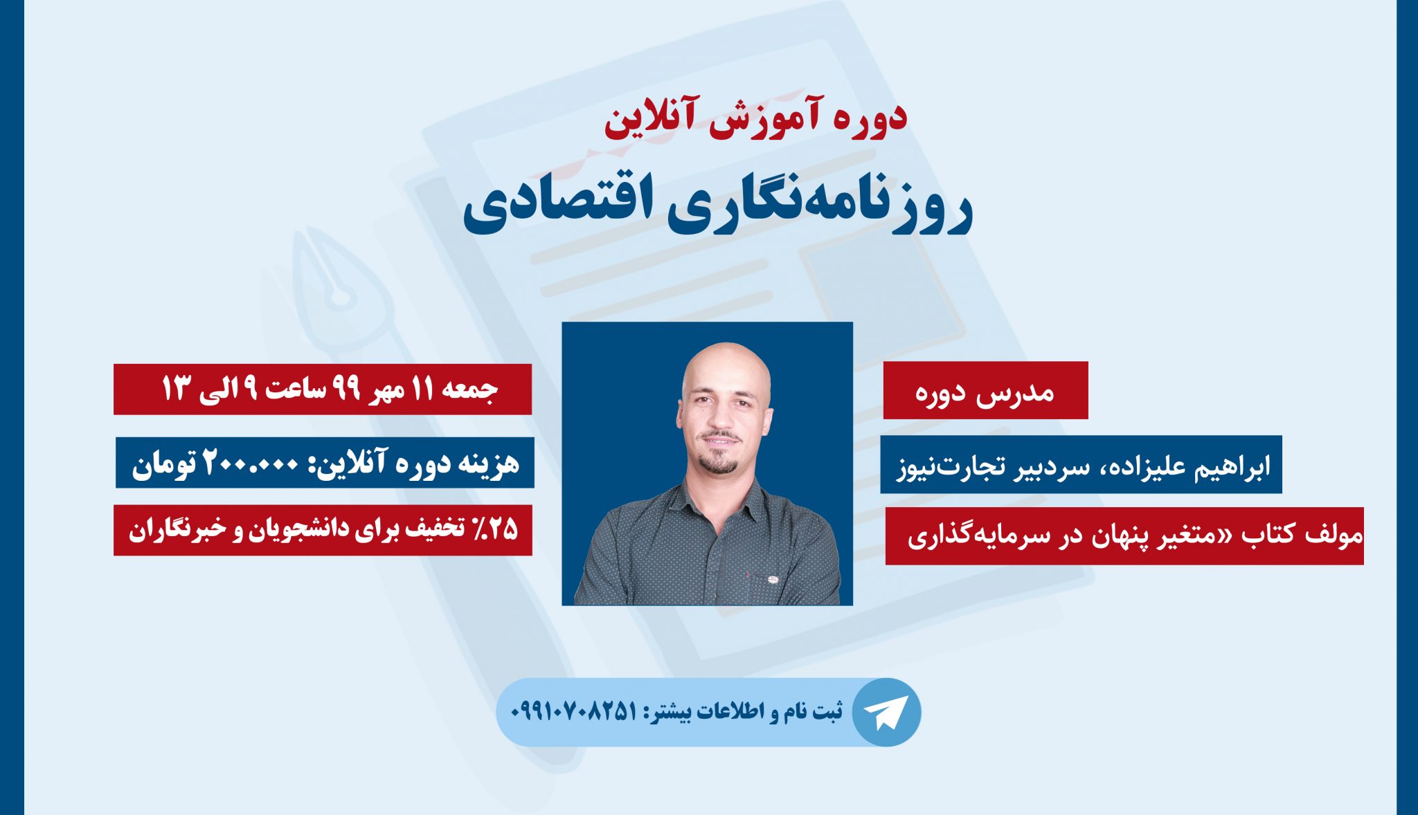 در این راستا، سایت خبری تجارت‌نیوز، یک دوره آنلاین را با عنوان «آموزش آنلاین روزنامه‌نگاری اقتصادی» برگزار می‌کنند. این دوره روز جمعه 11 مهر ماه سال 1399 از ساعت 9 تا 13 برگزار خواهد شد.