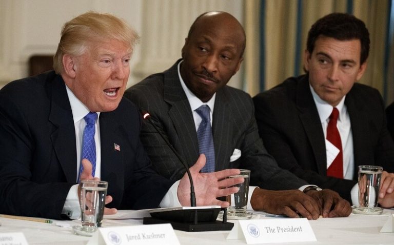 روسای شرکت‌های کامپیوتری اینتل، داروسازی مِرک، و شرکت تولید و پخش لباس‌های ورزشی آندر آرمور ( Under Armour) که به عنوان مشاوران اقتصادی در شورای مشورتی تولیدات آمریکایی حضور داشتند، از حضور در این نهاد مشورتی استعفا دادند.