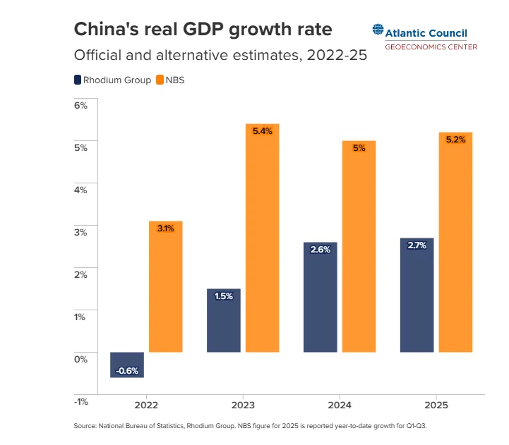 دنیل روزن، پژوهشگر ارشد غیرمقیم در مرکز اقتصاد جغرافیایی شورای آتلانتیک و عضو موسس گروه رودیم تاکید دارد که پکن احتمالا نرخ رشد تولید ناخالص داخلی ۲۰۲۵ را نزدیک به ۵ درصدی که برای سال تعیین کرده اعلام خواهد کرد. اما این عدد با شاخصهای کمکیاش، از جمله دادههای رسمی مثل دادههای اداره ملی آمار چین (NBS) همخوانی ندارد. برآوردهای به دست آمده، از جمله گزارشی که به زودی گروه رودیم منتشر خواهد کرد، نشان میدهد که نرخ رشد نزدیک به ۲.۷ درصد ارزیابی شده است.