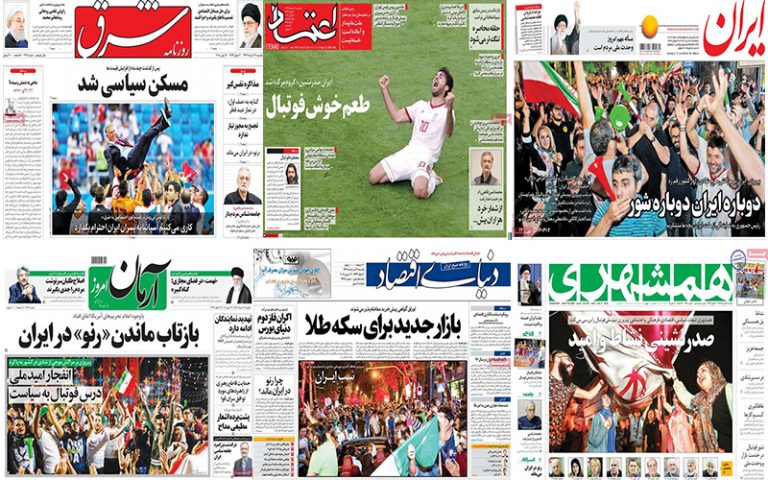 روزنامه اعتماد صفحه اول خود را به صورت کامل به عکس خوشحالی بازیکنان ایرانی اختصاص داده و با گفتن جمله «ایران صدرنشین گروه مرگ شد»، تیتر «طعم خوش فوتبال» را انتخاب کرده است.