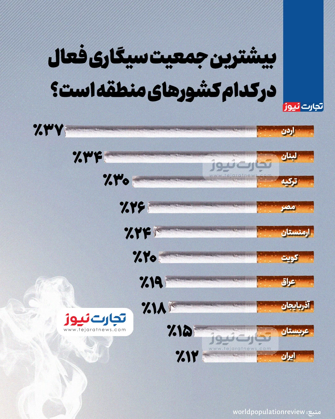 اینفوگرافی | بیشترین جمعیت سیگاری فعال در کدام کشورهای منطقه است؟