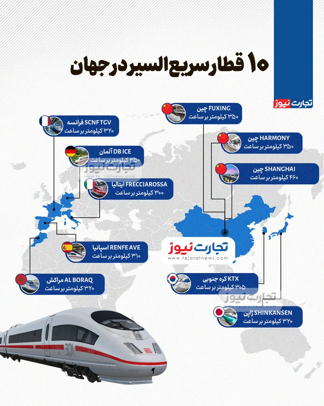 اینفوگرافی | ۱۰ قطار سریع‌السیر در جهان