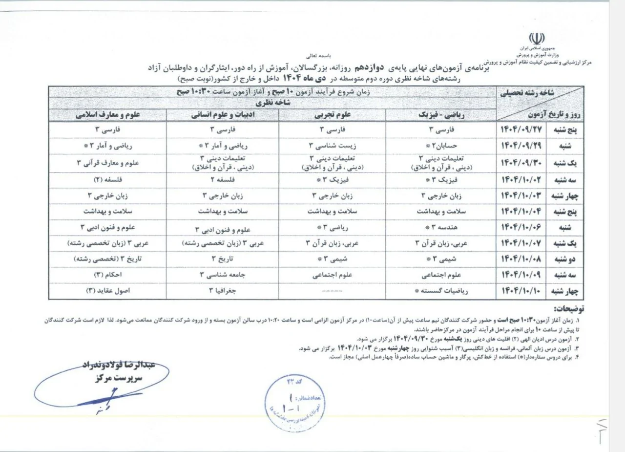 برنامه امتحانات نهایی دوازدهمیها اعلام شد + جزئیات و جدول