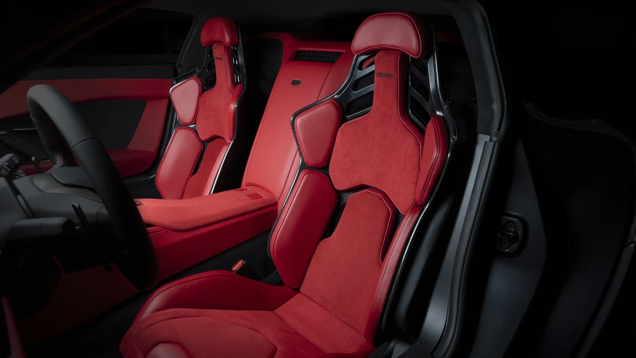 صندلی‌ها از نوع مسابقه‌ای یکپارچه با ساختار فیبر کربن هستند و شرکت ریکارو آنها را تولید می‌کند. حضور سامانه انتقال نیرو در عقب باعث کوچک شدن فضای حمل بار شده است، اما به نظر می‌رسد همچنان محفظه‌ای کوچک میان دو صندلی باقی مانده باشد.