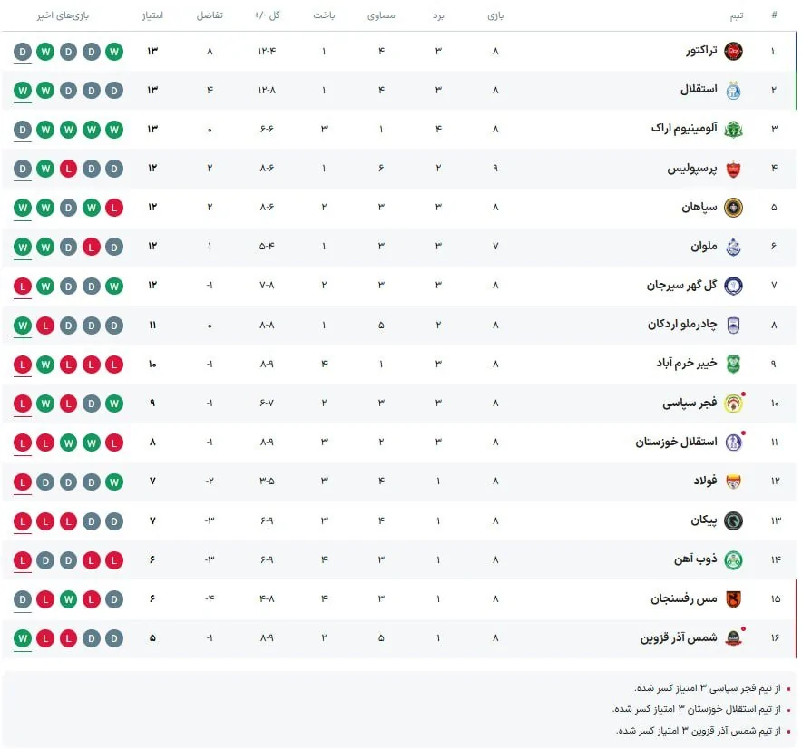 با این تساوی دو تیم یک امتیاز کسب کردند و تراکتور موقتا به صدرجدول و پرسپولیس به رده چهارم رسید.