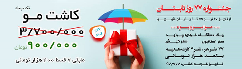 جشنواره 77 روزه کلینیک ایران نوین جدیدترین جشنوارهای است که در آن خدمات کاشت مو و ابرو به صورت اقساطی انجام میشود. این شرایط جدید به گونهای است که بیمار 77 درصد هزینه کاشت مو و ابرو خود را بهصورت چک طی 7 ماه پرداخت میکند. علاوه بر بازپرداخت 7 ماهه مراجعه کنندگان با هر 3 میلیون خرید، شانس خود را در قرعهکشی جایزه ویژه جشنواره 77 روزه کلینیک ایران نوین امتحان میکنند. در این جشنواره، به 77 نفر کارت هدیه ویژه استفاده از خدمات کلینیک اهدا میشود..