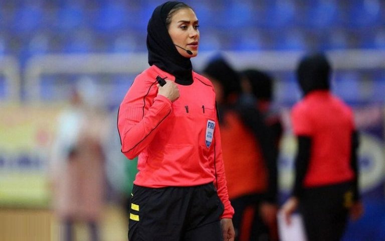 یک داور زن ایرانی رقابت‌های جام جهانی را سوت می‌زند