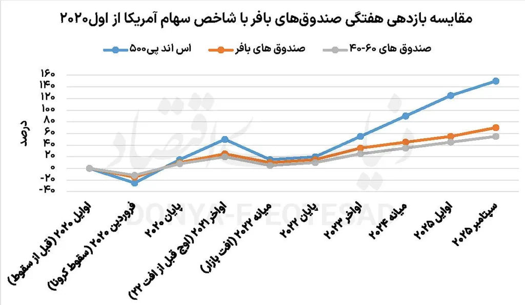 اما در سال‌های صعودی مثل ۲۰۲۳ و ۲۰۲۴، فاصله بازدهی این صندوق‌ها با بازار به‌وضوح نمایان شد. درحالی‌که شاخص S&P ۵۰۰ بیش از ۲۰درصد رشد داشت، بسیاری از صندوق‌های بافر تنها ۸ تا ۱۲درصد سود نصیب سرمایه‌گذاران کردند. به بیان دیگر، سرمایه‌گذار در روزهای سخت ضرر کمی می‌کند اما در روزهای خوب نیز از بخش زیادی از سود محروم می‌شود.
