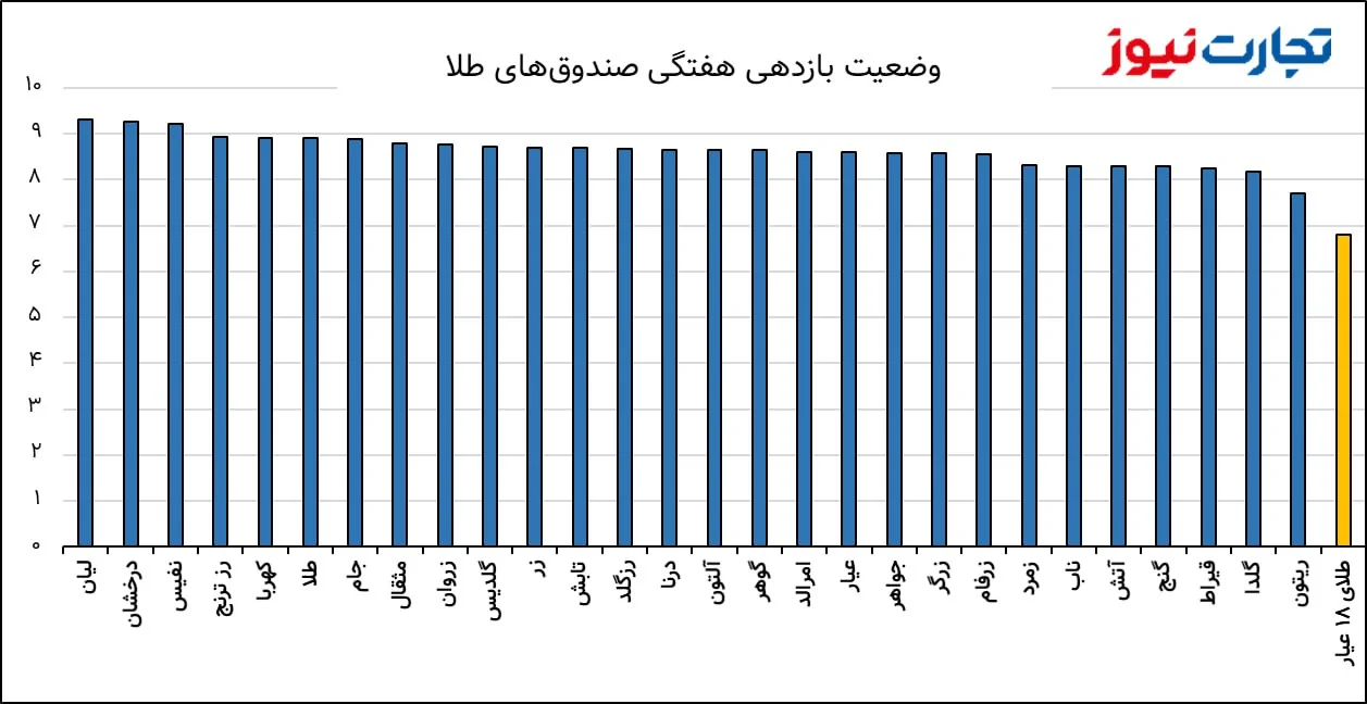 طی هفته گذشته، نرخ دلار حدود پنج درصد افزایش یافت و طلای 18 عیار نیز رشد 6.8 درصدی را ثبت کرد؛ موضوعی که مسیر صندوقها را به کانال صعودی هدایت کرد. این روند قیمت صندوق های طلا را به طور متوسط 8.6 درصد بالا برد.
