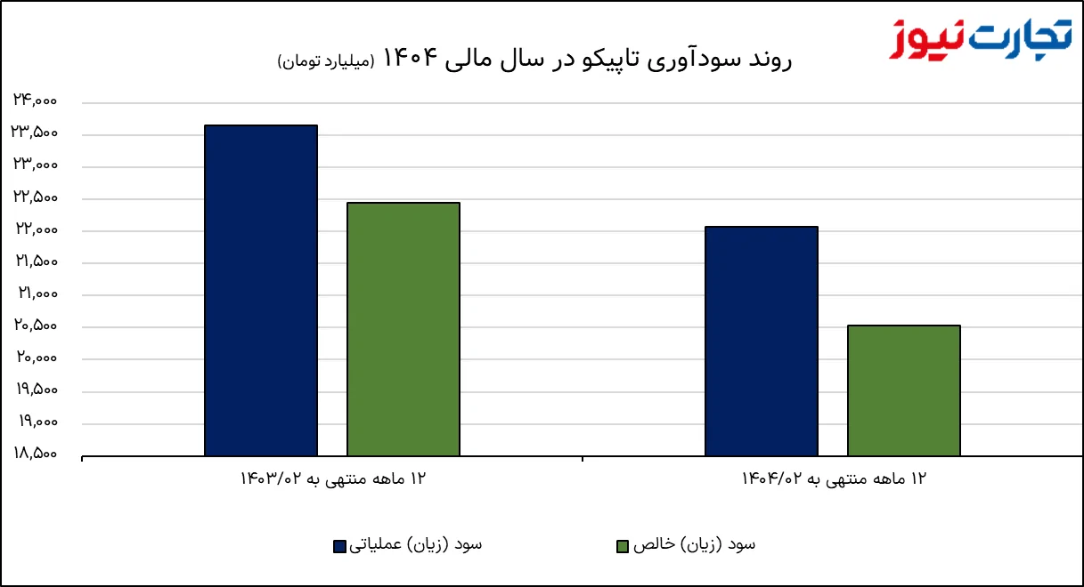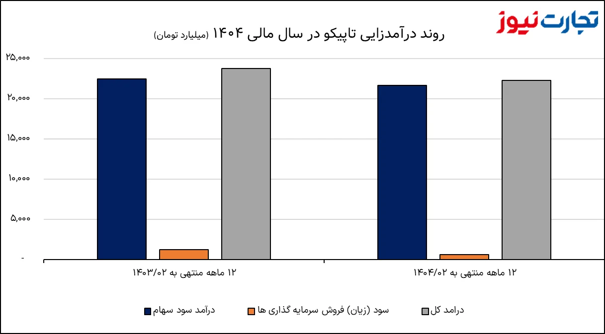 گزارش سال مالی 12 ماهه منتهی به اردیبهشت 1404 نشان می‌دهد تاپیکو در حالی این دوره را به پایان رسانده که در تمامی اقلام اصلی درآمدی و سودسازی عقب‌گرد داشته است. بر اساس این گزارش که در سامانه کدال منتشر شده، «درآمد سود سهام» شرکت از 22 هزار و 479 میلیارد تومان در سال مالی 1403 به 21 هزار و 636 میلیارد تومان در سال جاری رسیده که افتی معادل چهار درصد نشان می‌دهد.