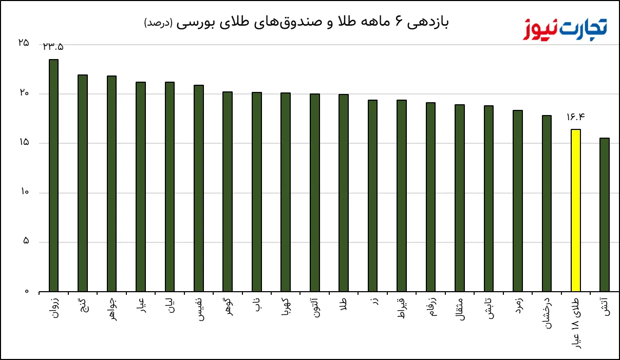 در رده‌های میانی جدول، صندوق‌هایی چون نفیس، گوهر، ناب و کهربا بازدهی نزدیک به ۲۰ درصد داشتند. این عملکرد هرچند پایین‌تر از صندوق‌های صدرنشین است، اما همچنان فاصله محسوسی با طلای ۱۸ عیار دارد. صندوق‌های آلتون و طلا نیز با بازدهی ۲۰ درصدی در نیمه سال، عملکردی متعادل اما بالاتر از طلای فیزیکی داشتند.