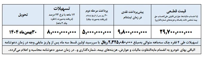 به گزارش تجارت نیوز، این طرح با قیمت قطعی، از امروز شنبه 10 آبان 1404 به شرح جدول ذیل ارائه می گردد.