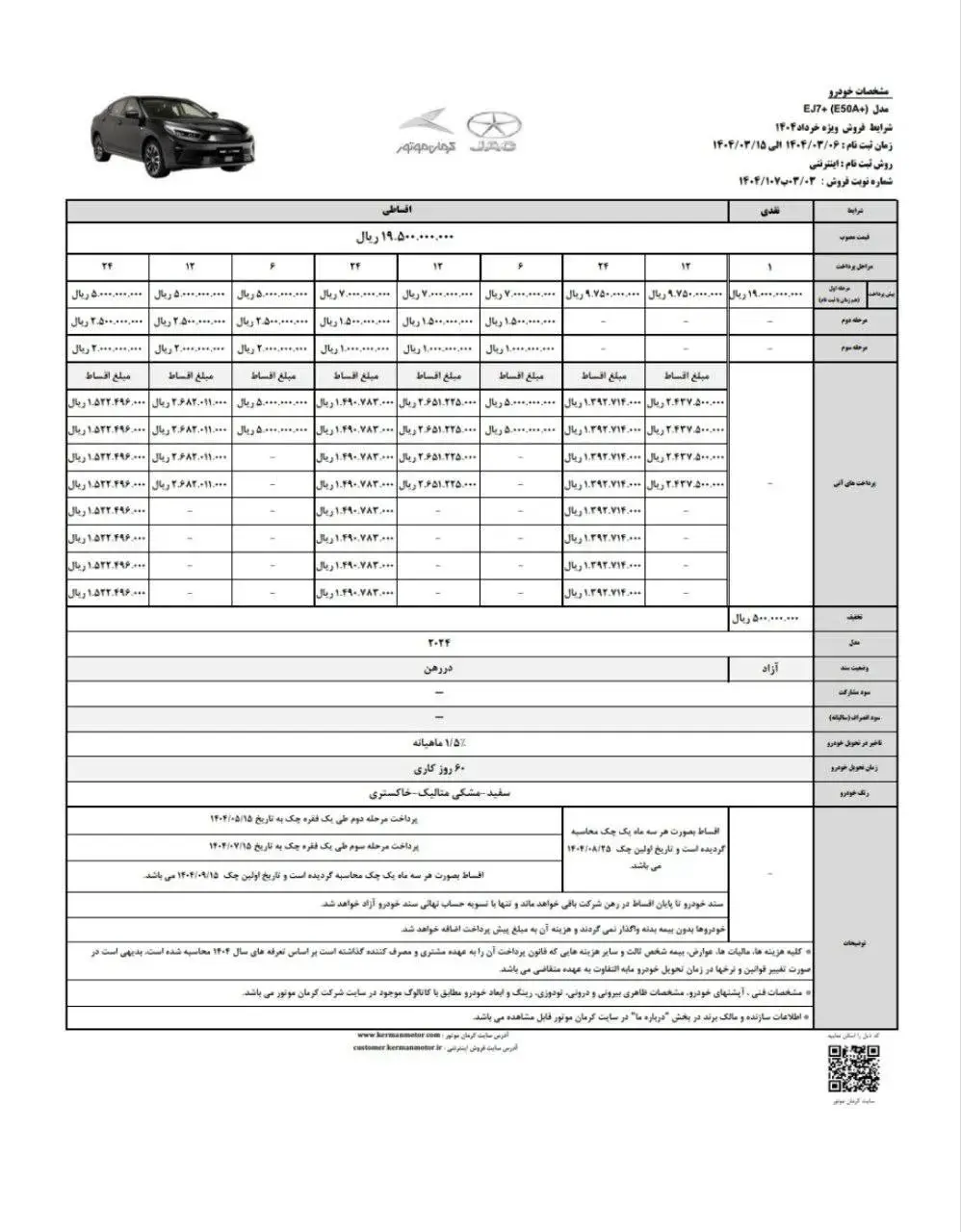 شرایط فروش یک محصول کرمان موتور ویژه ۶ خرداد ۱۴۰۴ اعلام شد.
