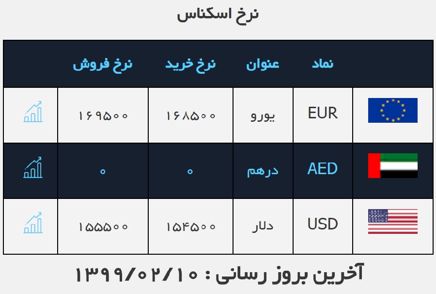 جدیدترین نرخ دلار و یورو / قیمت ارز در صرافی ملی ۹۹/۲/۱۰