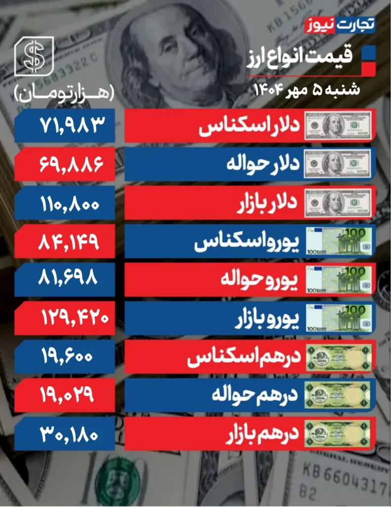 اسکناس دلار در مرکز مبادله روی رقم 71 هزار و 983 تومان قرار گرفت. حواله دلار نیز با رقم 69 هزار و 886 تومان معامله شد.