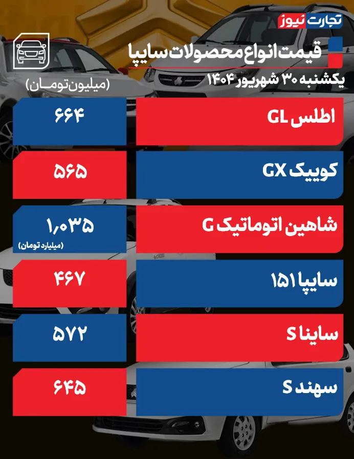 به گزارش تجارت نیوز، قیمت محصولات سایپا امروز 30 شهریور 1404 در شرایطی اعلام شد که بازار خودرو از روز گذشته تحت فشار نوسانات ارزی و افزایش ریسکهای سیاسی قرار گرفته است. در نتیجه نرخ اغلب مدلهای سایپا صعودی گزارش میشود. کارشناسان معتقدند این رشد قیمتی بیش از آنکه ناشی از افزایش واقعی تقاضا باشد، محصول انتظارات تورمی و نگرانی خریداران از آینده اقتصادی کشور است. به همین دلیل، تغییرات اخیر بیشتر بازتابی از فضای روانی حاکم بر بازار است و تحولات بنیادینی در حوزه عرضه و تقاضا رخ نداده است.