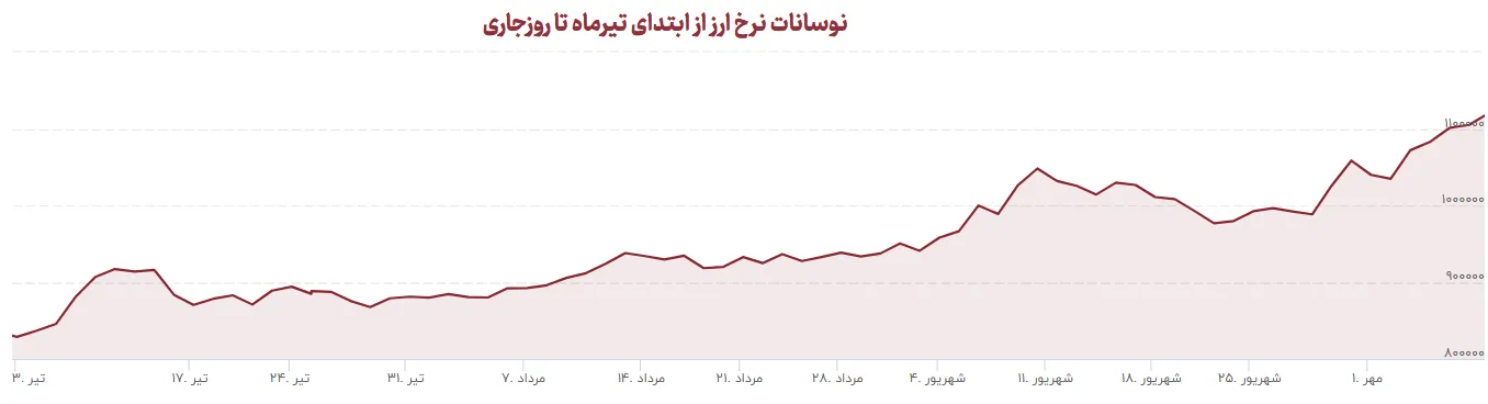 نرخ ارز آزاد در ابتدای تیرماه 82 هزار و 870 تومان برآورد میشد و اگر نرخ ارز در روز جاری 113 هزارتومان در نظر گرفته شود، نرخ ارز آزاد در بازه زمانی مذکور رشد تقریبی 36 درصدی را تجربه کرده است.