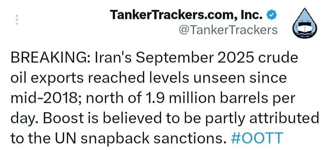 آنطور که تانکرترکرز گزارش داده، میزان صادرات نفت ایران در سپتامبر 2025 به بیش از 1.9 میلیون بشکه در روز رسیده است که رکوردی است که از اواسط 2018 به بعد ثبت نشده بود. اما این اولین باری نیست که ایران توانسته است میزان صادرات نفت بالایی داشته باشد.