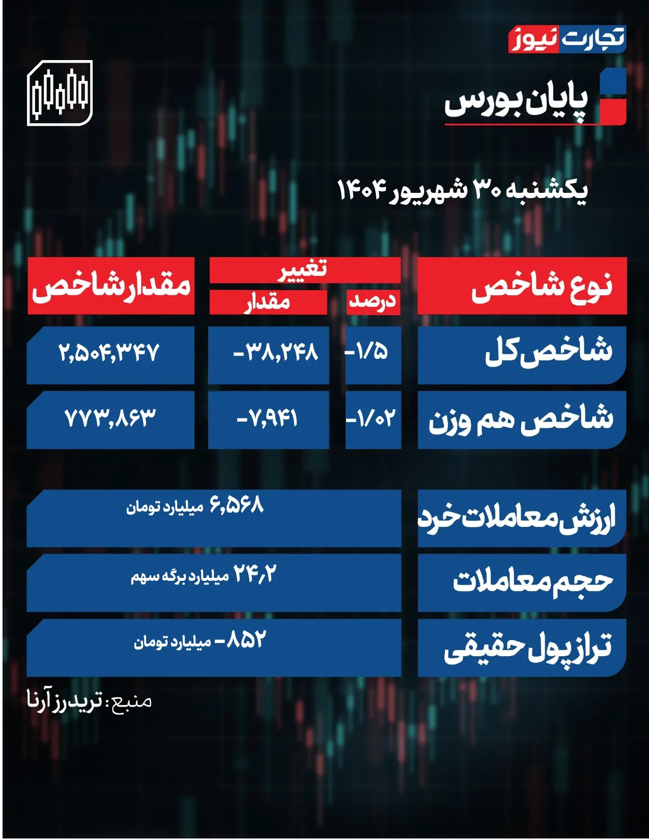 پایان بورس امروز یکشنبه 30 شهریور 1404 / فرار سهامداران به سوی بازارهای ارز و طلا