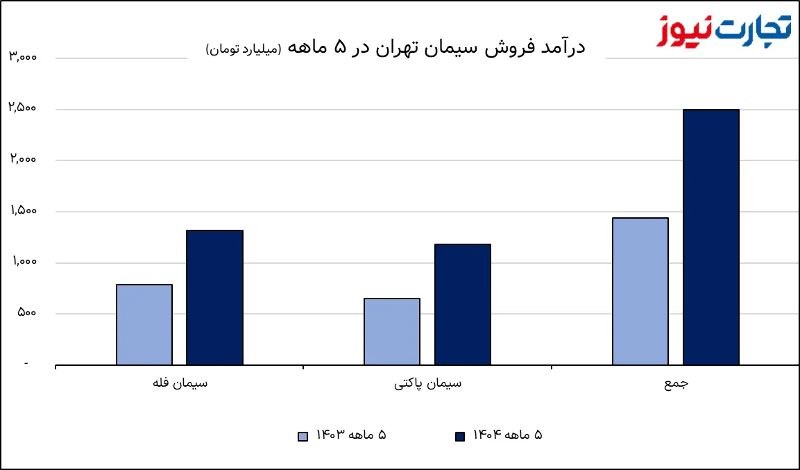 اما در نقطه مقابل، درآمد حاصل از فروش شرکت جهش چشمگیری داشته است. مجموع مبلغ فروش سیمان تهران در پنجماهه ۱۴۰۴ به دو هزار و ۵۰۰ میلیارد تومان رسیده که نسبت به هزار و ۴۳۹ میلیارد تومان پنجماهه سال گذشته رشد ۷۴ درصدی را ثبت کرده است.