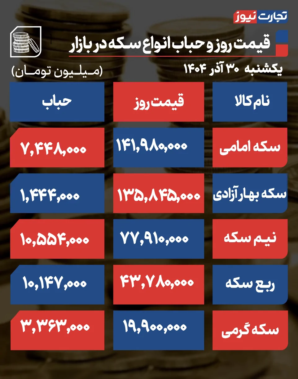 در بازار سکه، کارشناسان بازه قیمتی ۱۴۱ تا ۱۴۳ میلیون تومانی را برای سکه امامی پیش‌بینی می‌کنند و معتقدند قطعات سنگین، تحت فشار افت دلار با احتیاط بیشتری معامله خواهند شد. در مقابل، احتمال حفظ یا حتی رشد محدود قیمت در سکه‌های سبک به دلیل افزایش حباب و تقاضای خرد وجود دارد.