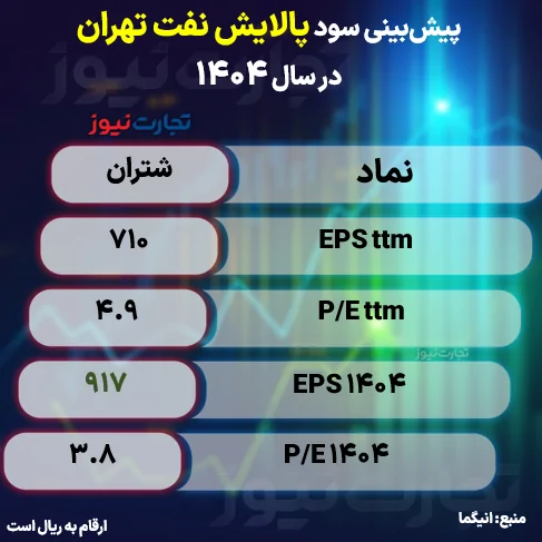 به گزارش تجارت نیوز، بررسی و تحلیل ارقام سودسازی شرکت پالایش نفت تهران در صورتهای مالی منتشرشده فصلی نشان میدهد، EPS این شرکت در پایان سال مالی 1404 افزایش خواهد یافت. به طوری که طبق پیشبینیها سود شتران از 710 ریال در 12 ماهه گذشته به 917 ریال خواهد رسید. این روند P/E آیندهنگر شرکت را به 3.8 خواهد رساند.