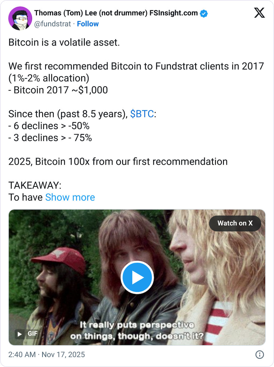 تام لی در روز یکشنبه با منتشر کردن پستی در شبکه اجتماعی X، توضیح داد که در سال 2017، به مشتریان شرکت تحقیقاتی خود، خرید بیت کوین را که در آن زمان حدود 1000 دلار بود، پیشنهاد کرده بود. با این وجود، از زمان پیشنهاد اولیه وی به این مشتریان، بیت کوین حدود 100 برابر رشد کرده است. وی باور دارد که اتریوم نیز وارد چنین چرخه رشدی خواهد شد.