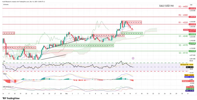 در سمت مقابل، حمایت فوری بازار در سطح 4,310 دلار قرار دارد و در صورت شکست این سطح، حمایت بعدی در محدوده 4,290 دلار دیده می‌شود که با میانگین متحرک نمایی 50 دوره‌ای در تایم‌فریم چهار ساعته هم‌راستا است.