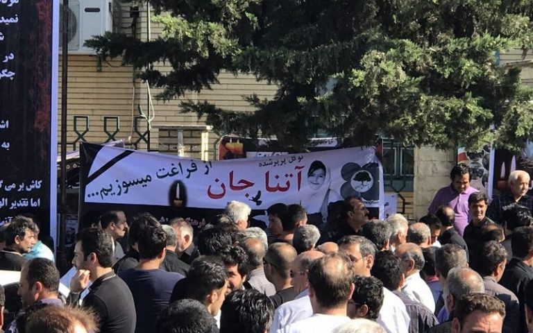 شهلا، یکی از زنان فامیل، می‌گوید: «پنجم تیر تولدش بود. دو سال نتوانستند برایش تولد بگیرند؛ چون هر سال یکی از اقوام‌شان فوت کرده بود. امسال آتنا به مادرش گفته بود دیگر عزادار کسی نیستیم و از او خواسته بود برایش جشن تولد بگیرند». صدایش به لرزه می‌افتد و صورتش پر از اشک می‌شود. آسنا، خواهر چهارساله آتنا، چند قدم آن طرف‌تر در حال بازی‌کردن است. وقتی بچه‌ها صدای خنده‌شان بلند می‌شود، رو به آن‌ها می‌کند و می‌گوید: «نخندید، مگر نمی‌دانید آتنا مرده است». این را می‌گوید و آرام به بازی خود ادامه می‌دهد.