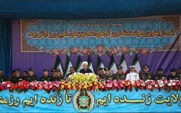حجت‌الاسلام و المسلمین حسن روحانی، رئیس‌جمهوری صبح چهارشنبه در مراسم گرامیداشت چهلمین سالروز ارتش که در جوار حرم امام خمینی (ره) برگزار شد، اظهار کرد: از آغاز انقلاب اسلامی کشور ما تا به امروز هرکجا غرور، افتخار،پیروزی ایستادگی، صبر و مقاومت و دلاوری بوده نام ارتش جمهوری اسلامی ایران و فداکاری این عزیزان نیز حضور داشته است. ارتش با انضباط، انگیزه، اخلاق،آموزش کافی و همچنین سلاح و تجهیزات مدرن و آمادگی کامل همواره یک قدرت مهم بازدارنده برای جمهوری اسلامی ایران و دفاع از آب و خاک و میهن ما بوده است.