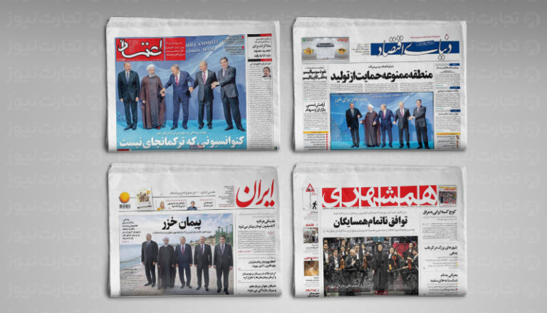 روزنامه ایران اما به چند نکته مهم این توافقنامه اشاره میکند. این روزنامه با تیتر «پیمان خزر»، یکی از نکات مهم را در این میداند که هیچ نیروی خارجی و شناور نظامی نمیتواند در خزر رفت و آمد کند. همچنین سرزمین هیچ کشورساحلی دریای خزر نمیتواند علیه کشور ساحلی دیگر مورد استفاده قرار بگیرد.