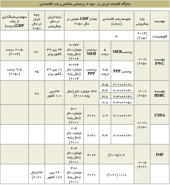 جایگاه اقتصاد ایران در سال 2050+جدول