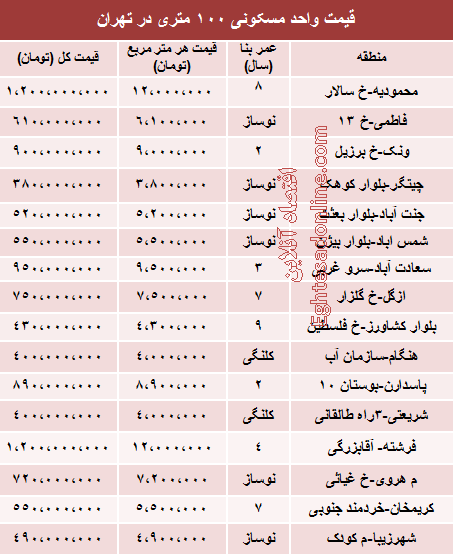 آنچه در زیر می آید جدول قیمت معاملات انجام شده آپارتمان 100 متری در مناطق 22گانه شهری تهران در اردیبهشت 95 است. لازم به ذکر است که این ارقام مربوط به اعلام سامانه مشاورین املاک کشور می باشد: تجارت نیوز: آنچه در زیر می آید جدول قیمت معاملات انجام شده آپارتمان 100 متری در مناطق […]