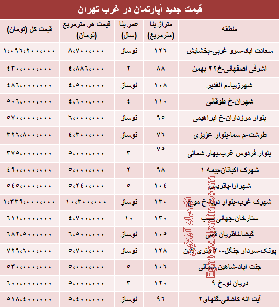 آنچه در زیر می آید جدول قیمت معاملات انجام شده آپارتمان در شمال تهران در اردیبهشت 95 می باشد. لازم به ذکر است که این ارقام مربوط به اعلام سامانه مشاورین املاک کشور می باشد: تجارت نیوز: آنچه در زیر می آید جدول قیمت معاملات انجام شده آپارتمان در شمال تهران در اردیبهشت 95 می […]