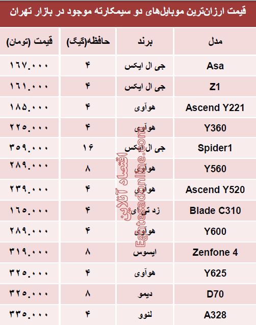 ارزان‌ترین موبایل‌های ‌2سیم کارت + قیمت