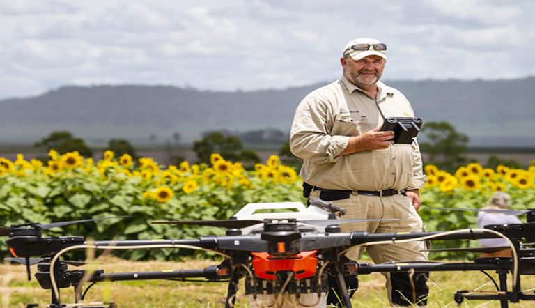یک کشاورز استرالیایی به نام راجر وودز در آزمایشی از یک پهپاد که مخصوصا برای کشاورزی طراحی شده بود برای کاشت گل آفتابگردان استفاده کرد.