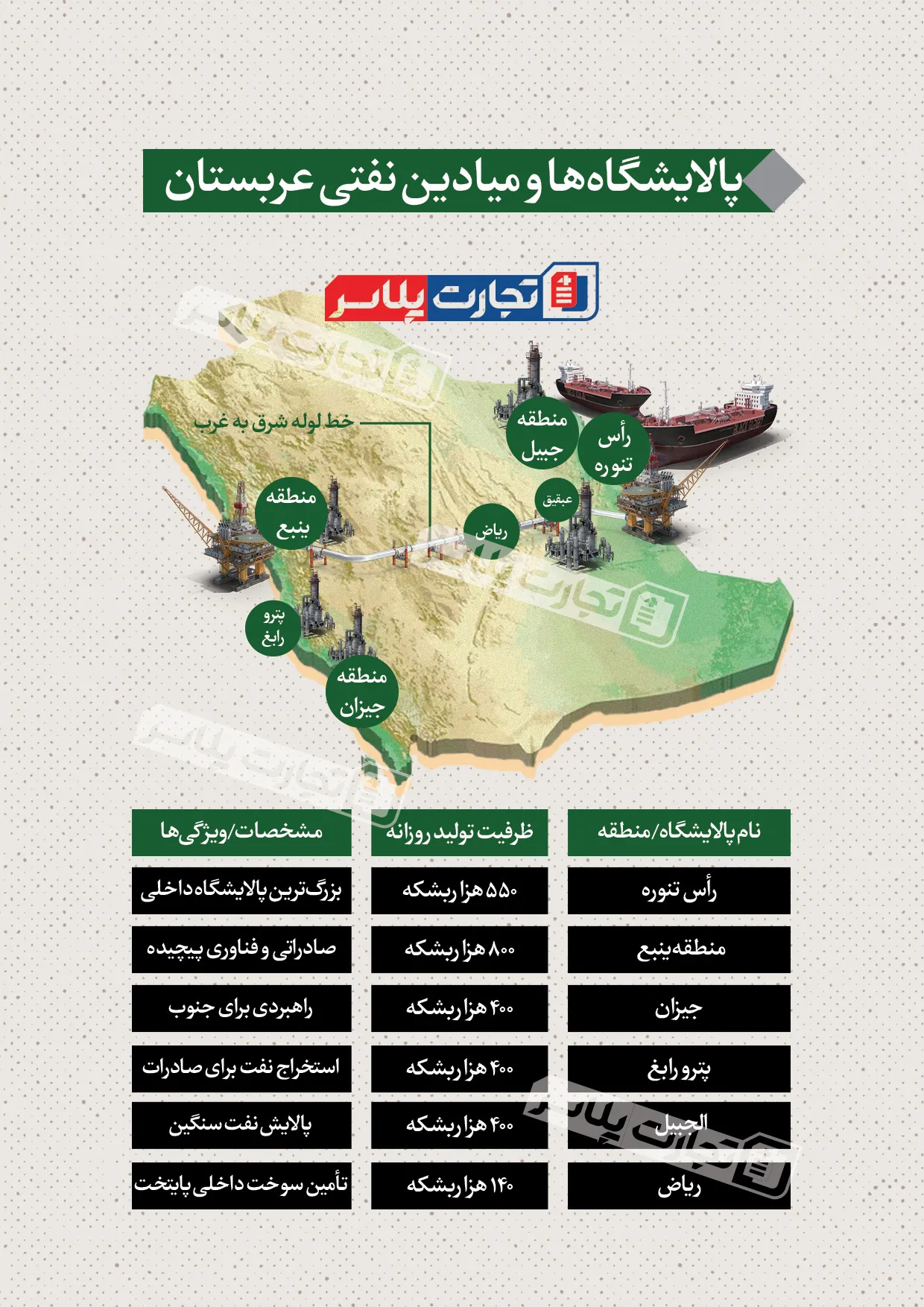 اینفوگرافی | پالایشگاه‌ها و میادین نفتی عربستان