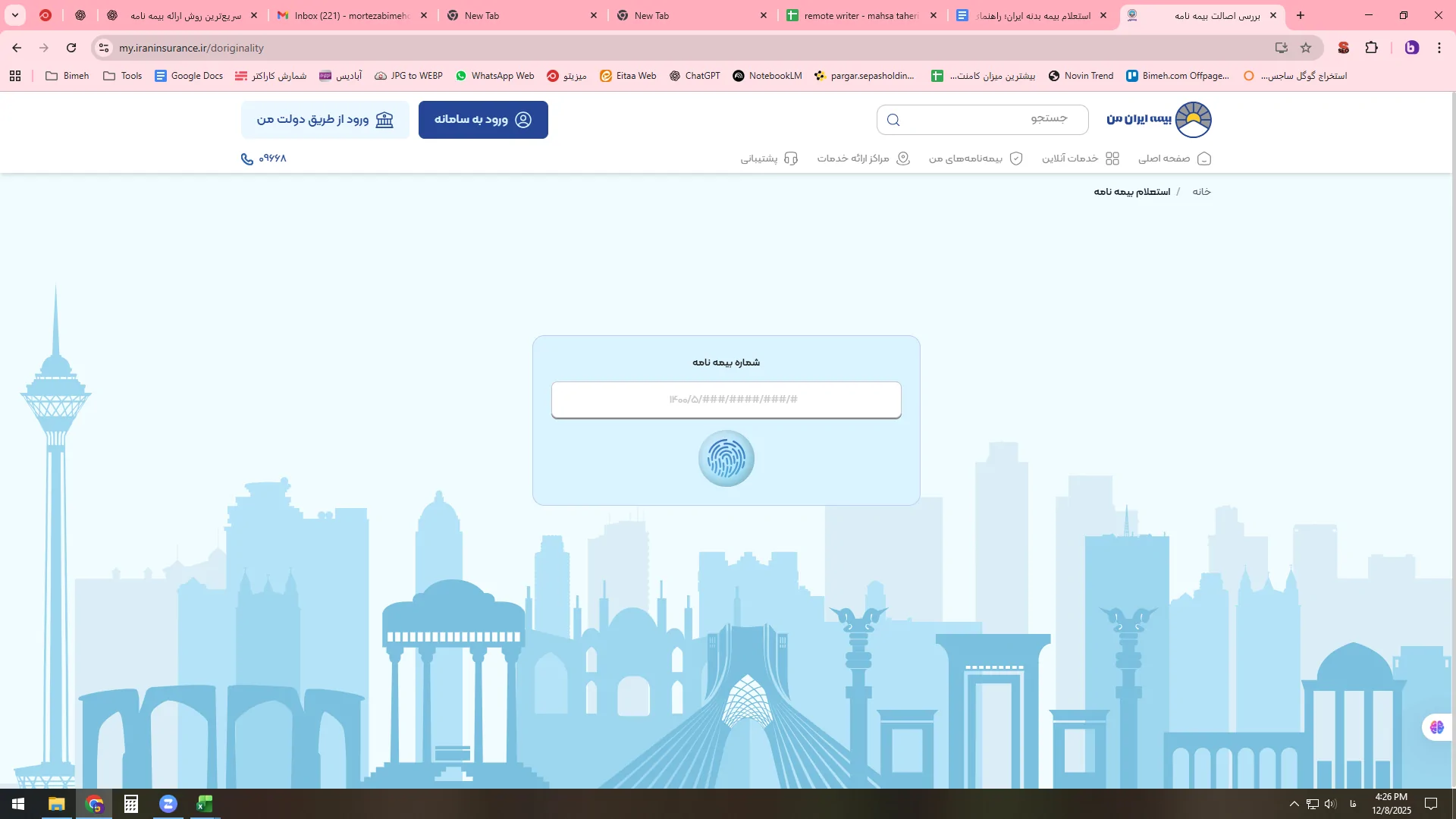 3. انتخاب گزینه استعلام بیمه‌نامه‌ها
