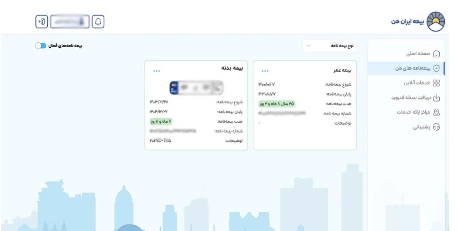 ۲. انتخاب گزینه «بیمه‌نامه‌های من»