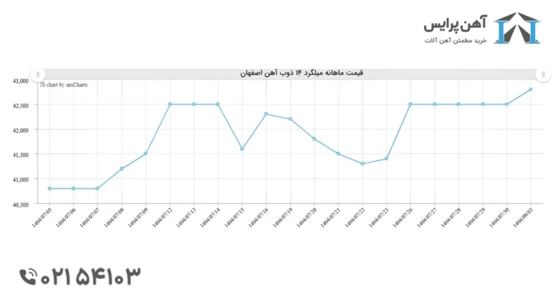 | میلگرد 14 آجدار | خلیج فارس | 14 | 300 افزایش | 35273 |