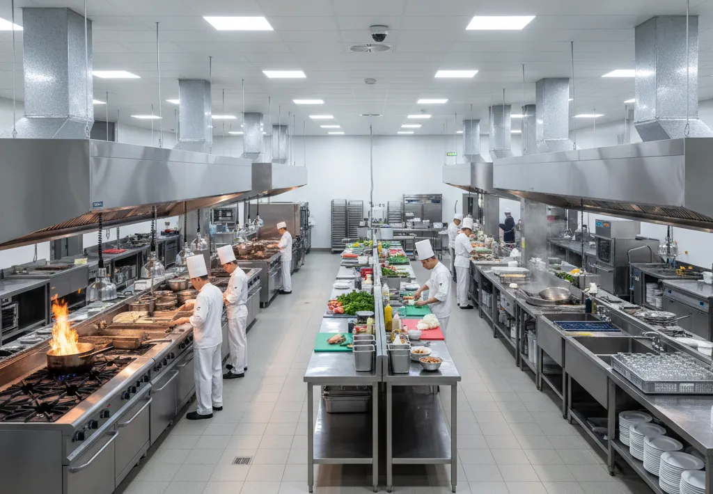 محل استقرار واحد بر هزینهها تأثیر مستقیم دارد؛ اجاره یا خرید ملک در نقاط پررفتوآمد هزینه اجاره را بالا میبرد اما درآمد بالقوه را نیز افزایش میدهد. نوع منو و حجم تولید تعیینکننده نوع و ظرفیت دستگاههاست؛ آشپزخانهای با منوی گرم و پخت طولانی نیازمند دیگها و اجاقهای بزرگتر است و هزینه اولیه بیشتری میطلبد.