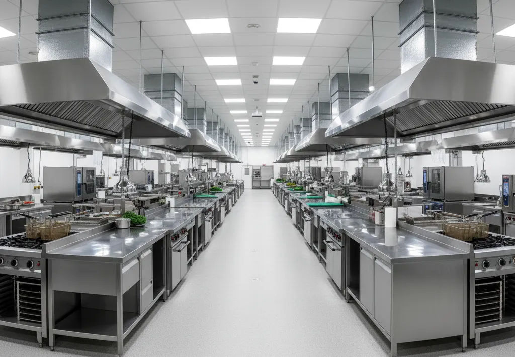 رعایت استانداردهای فنی و بهداشتی نهفقط الزام قانونی است بلکه از هزینههای اصلاحی و جرایم آتی جلوگیری میکند. طراحی صحیح شامل تعیین مساحت به ازای هر نفر و ارتفاع سقف برای تهویه مناسب است. فاصله استاندارد تجهیزات حرارتی از هم و از کف، نصب هودها طبق استانداردهای معتبر با مکش مناسب و اجرای سیستم اطفای حریق مطابق مقررات هزینههای اولیه را افزایش میدهد اما ریسکهای عملیاتی و توقف کار را کاهش میدهد.