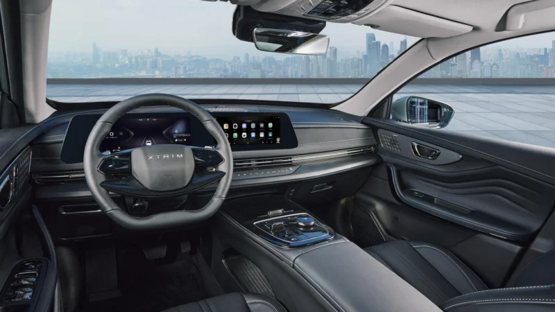 با ورود به کابین XTRIM SX، فصل تازه‌ای از مدرنیته آغاز می‌شود. فضای داخلی این خودرو با نمایشگر یکپارچه خمیده ۲۴.۶ اینچی تعریف شده که با شعاع انحنای 3000R، جلوه‌ای آینده‌نگر و منسجم ایجاد می‌کند. در پس این نمایشگر، قلب تپنده سیستم دیجیتال قرار دارد و آن  تراشه پرچم‌دار Qualcomm Snapdragon 8155می باشد.