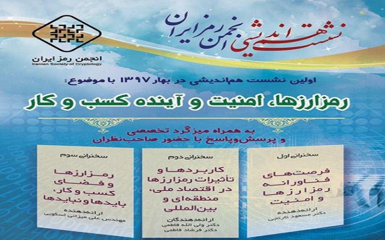 در این راستا، انجمن رمز ایران در نظر دارد به‌منظور بررسی مسایل فن آورانه و تبعات مالی و اقتصادی ارزرمزها، نشست هم‌اندیشی با موضوع رمزارزها، امنیت و آینده کسب و کار در تاریخ چهارشنبه، ۵ اردیبهشت‌ماه سال جاری از ساعت ۱۷:۳۰ الی ۲۰، در سالن اجتماعات سازمان جهاد دانشگاهی صنعتی شریف برگزار کند.