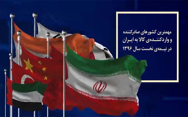 با توجه به آمارهای منتشر شده از نیمه نخست سال 96، مهمترین کشوری که ایران با آن رابطه تجاری داشته، چین است. در این ویدیو کشورهایی مانند هندوستان، عراق و کره نیز به چشم میخورند.